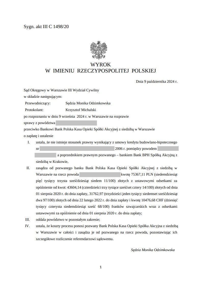 BeWa LexGroup odzyskuje ponad 75 000 PLN i 10 000 CHF od Banku Polska Kasa Opieki S.A. – Wyrok, który daje nadzieję na sprawiedliwość.