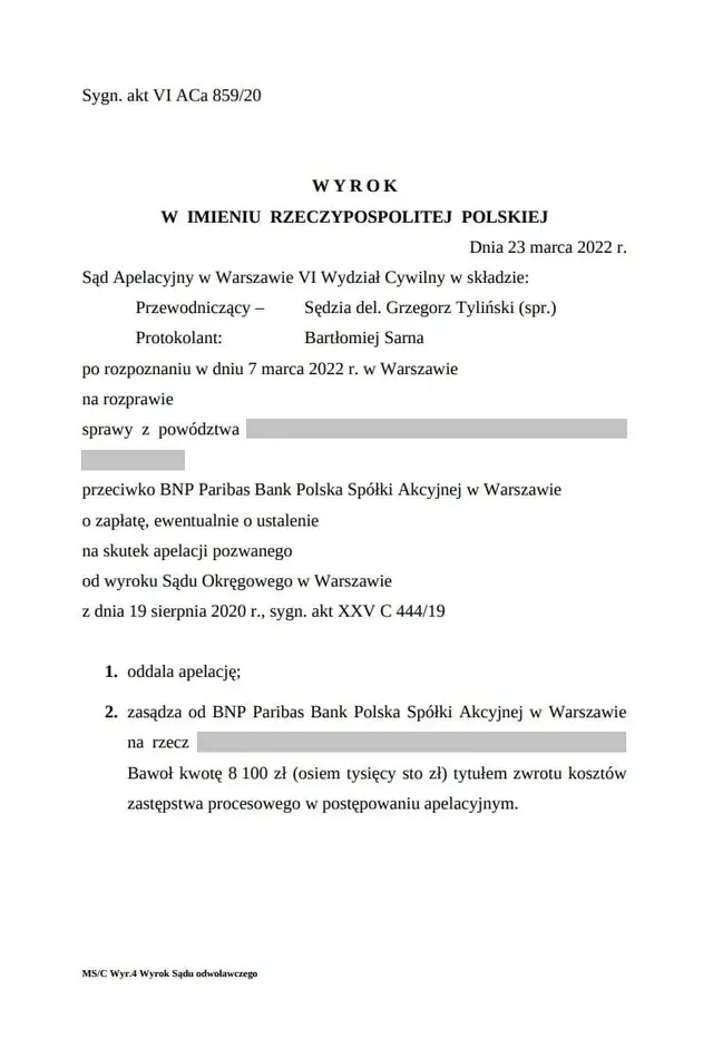 Pozwany: BNP Paribas Bank Polska S.A.