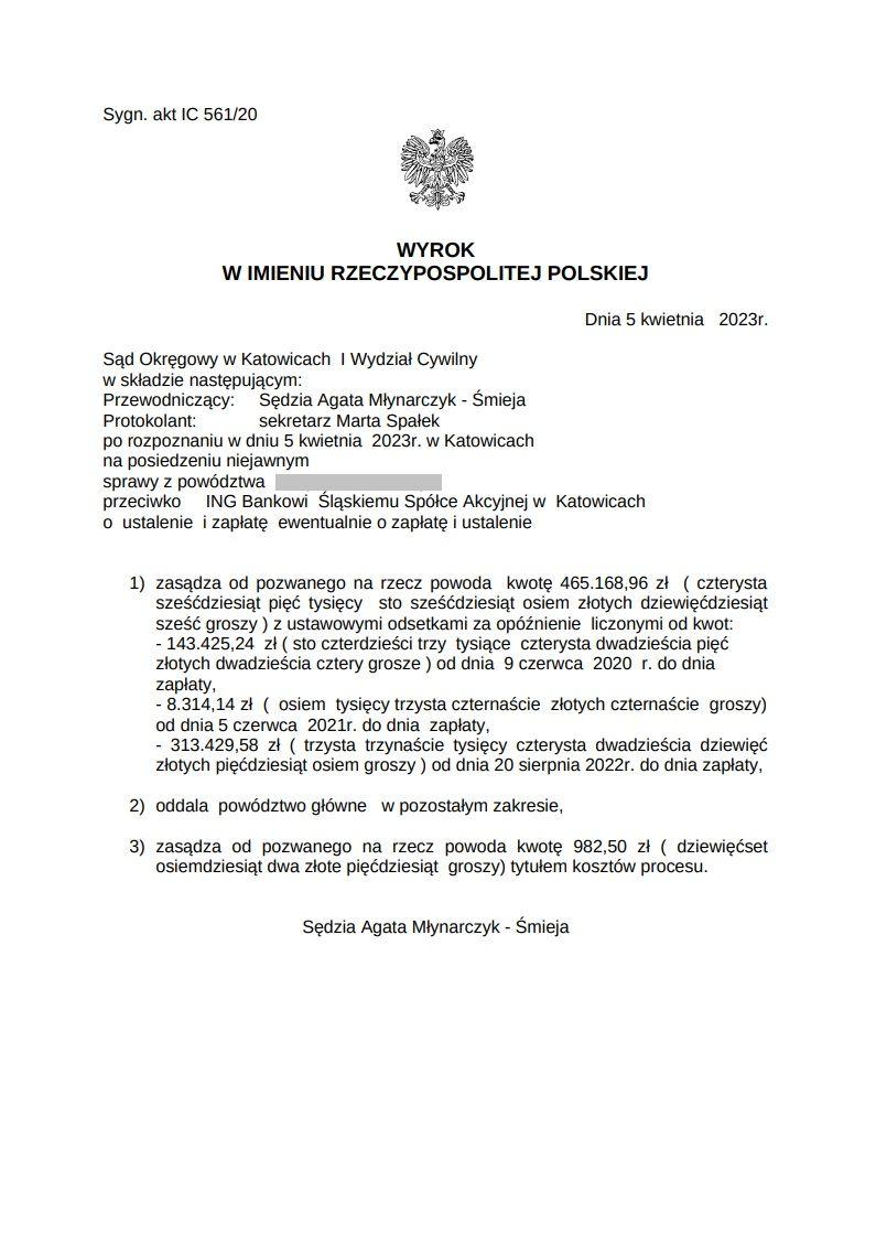 Dzięki naszym działaniom, Pani Katarzyna złożyła pozew przeciwko bankowi. Sąd Okręgowy w Katowicach, w wyroku z 5 kwietnia 2023 r., przyznał jej rację! Co to konkretnie oznacza dla Ciebie?