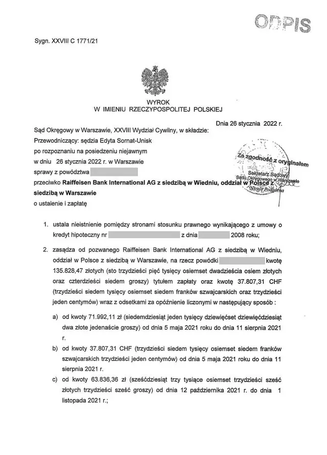 Pozwany: Raiffeisen Bank International AG (Spółka Akcyjna)